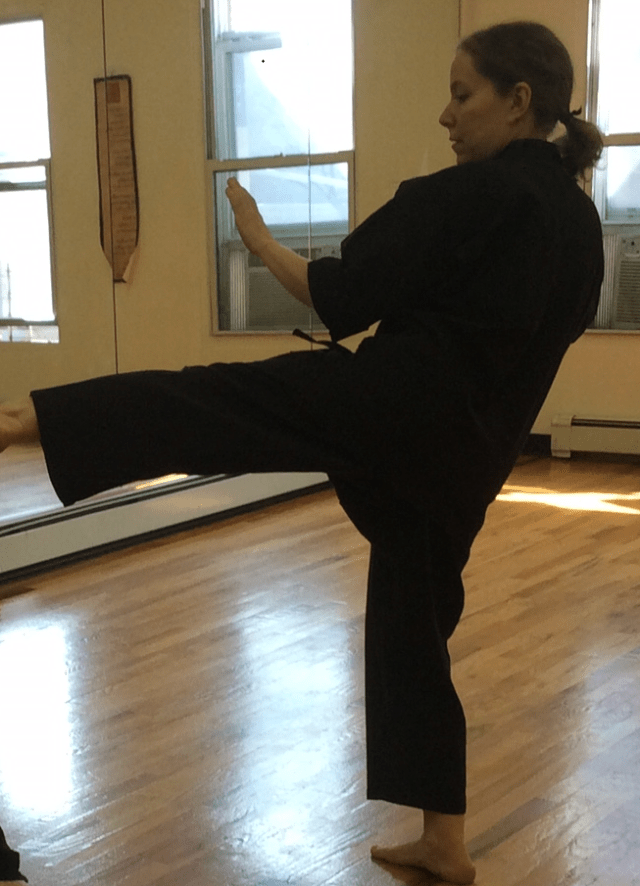 Kathleen Offenholley has been training in Goju karate for nearly 30 years. She has also studied Tai Chi, boxing, and Qigong. Her day job is teaching math at the Borough of Manhattan Community College, where she specializes in math games to combat math anxiety.